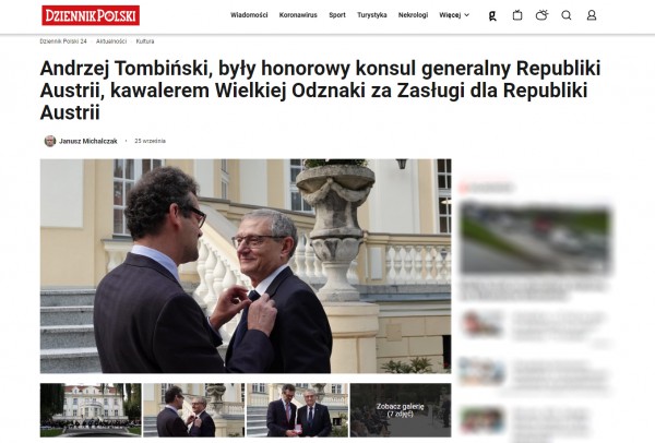 W Dzienniku Polskim ukazał się artykuł o odznaczeniu Andrzeja Tombińskiego, Prezesa Zarządu RE-Bau, a także honorowego konsula Republiki Austrii w Krakowie w latach 2013-2019, Wielką Odznaką Honorową za Zasługi dla Republiki Austrii.