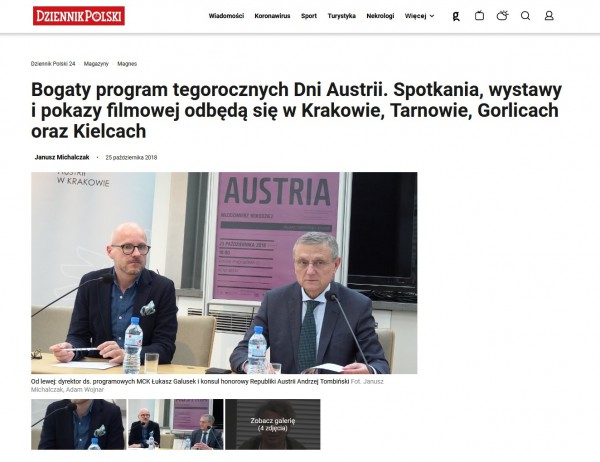 Bogaty program tegorocznych Dni Austrii. Spotkania, wystawy i pokazy filmowej odbędą się w Krakowie, Tarnowie, Gorlicach oraz Kielcach.