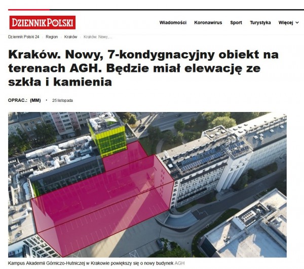 W Dzienniku Polskim ukazał się artykuł dotyczący nowego budynku AGH, który zostanie wybudowany przez RE-Bau link do artykułu