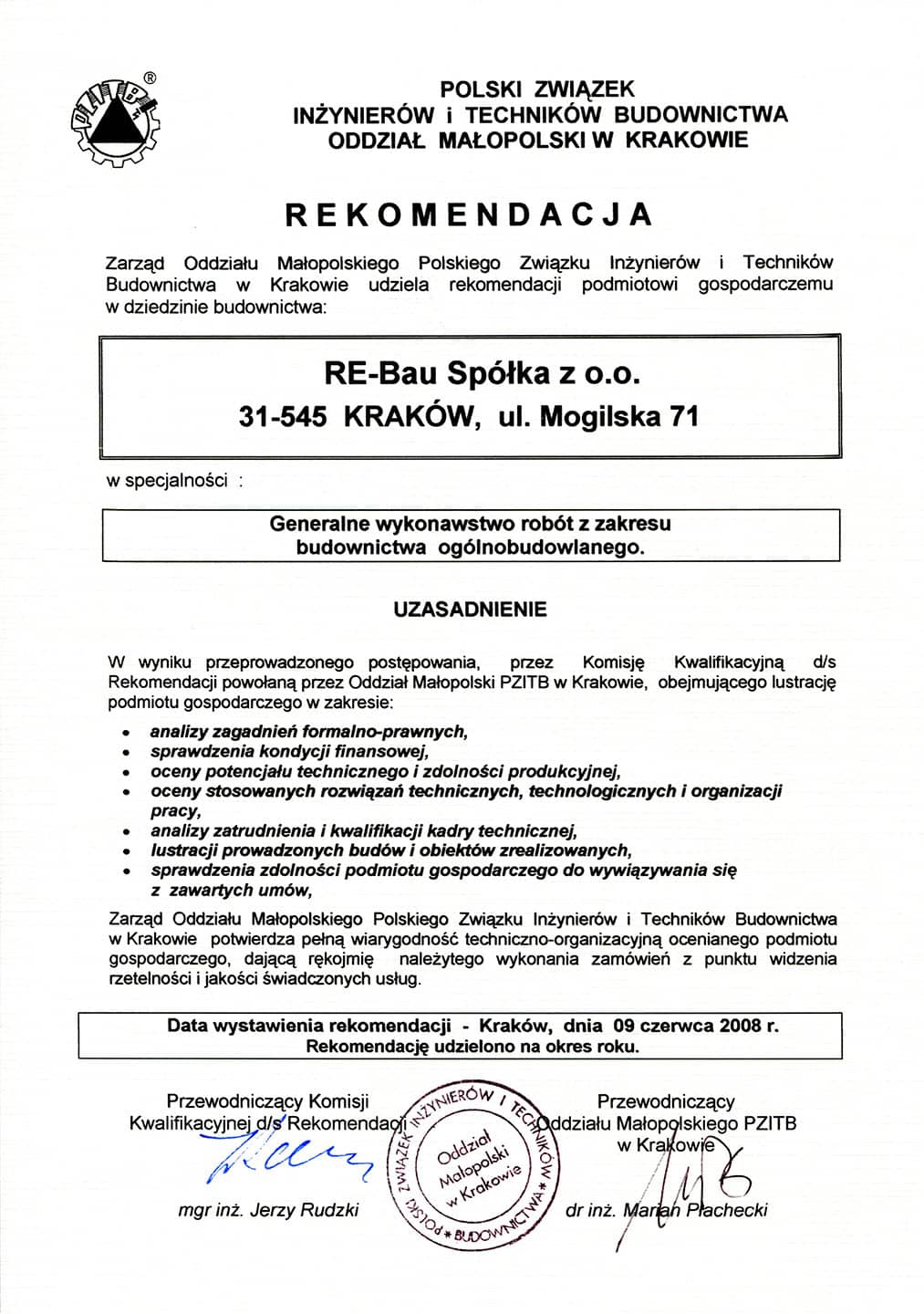 RE-Bau, est. 1996, is a modern construction and developer company implementing the projects in construction industry both in Poland and abroad (in the previous years).