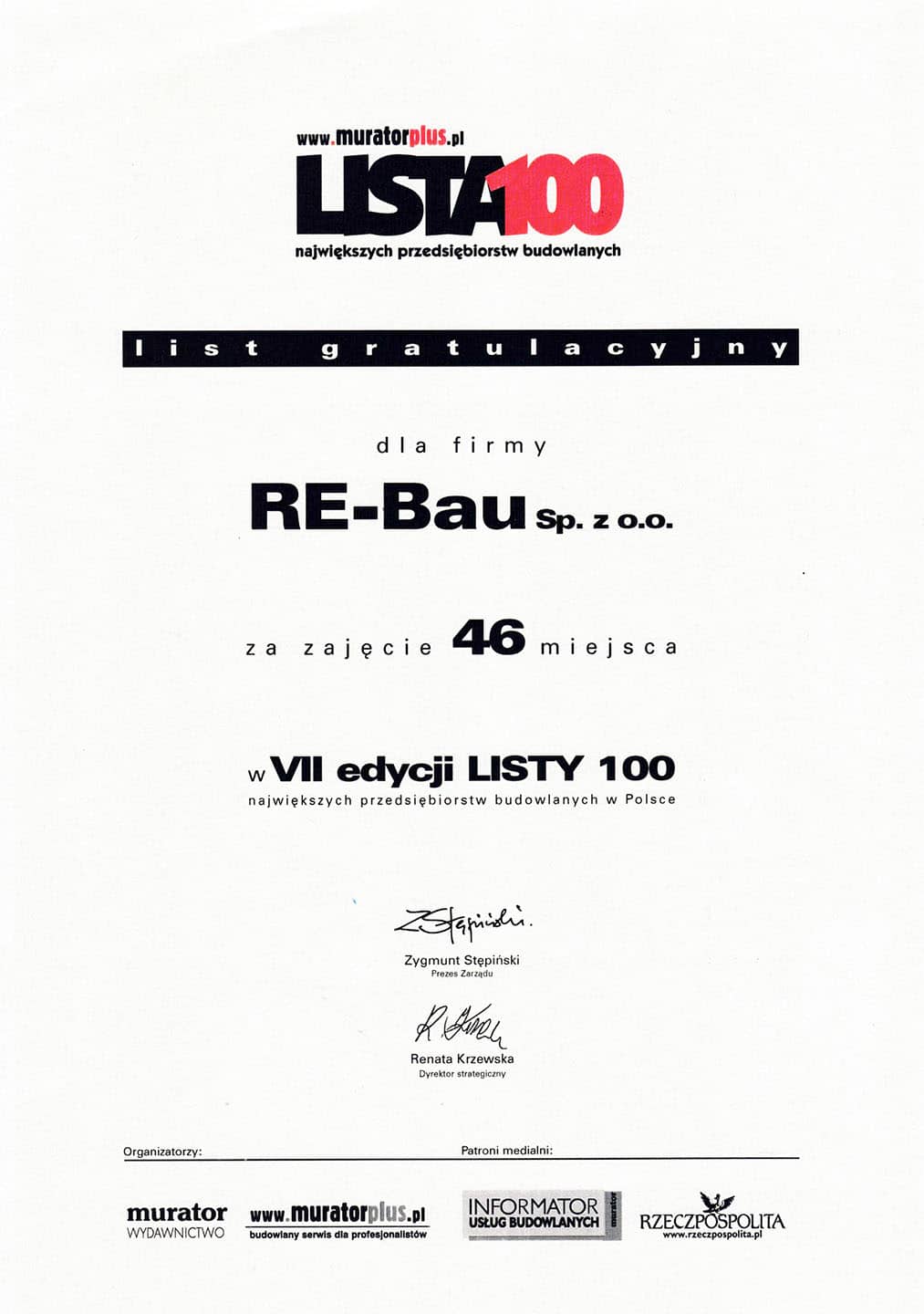 RE-Bau wins lots of prizes in contests like Budowa Roku which also proves its position in the construction industry.