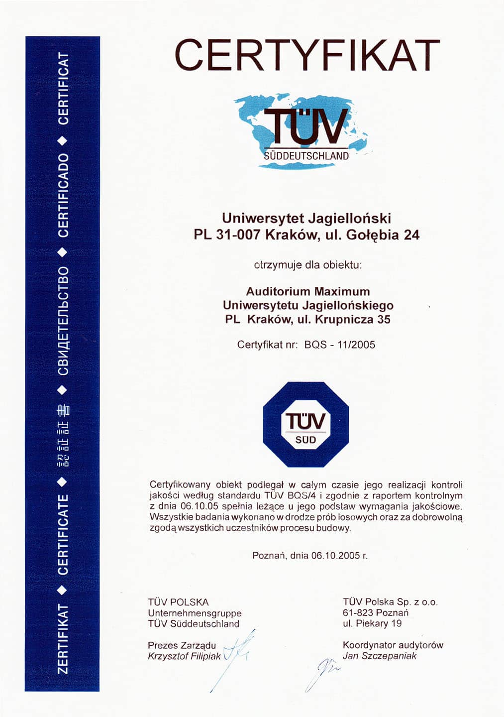 As we hire highly professional specialists we are ready to implement even the most complicated construction projects in an extremely short period of time, e.g. the Auditorium Maximum of Jagiellonian University or International Exhibition and Convention Centre EXPO Krakow which we have built at a record-breaking pace of 227 days.