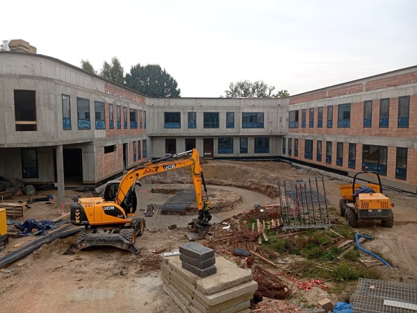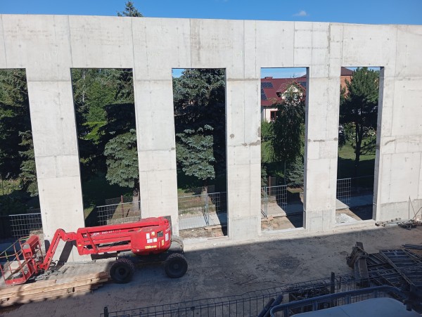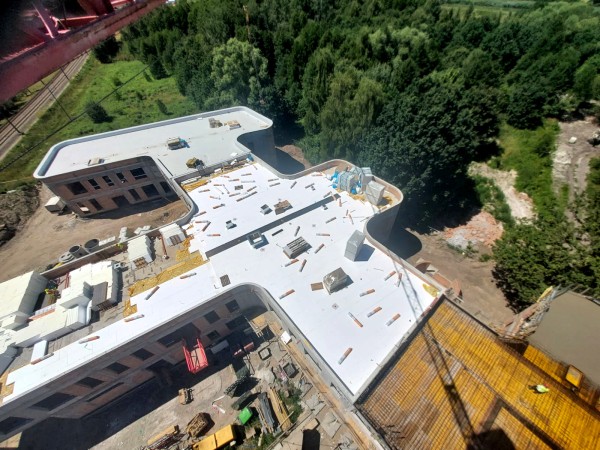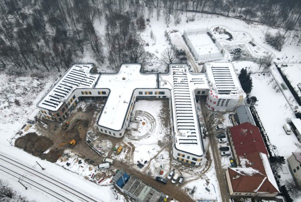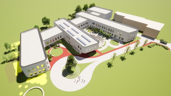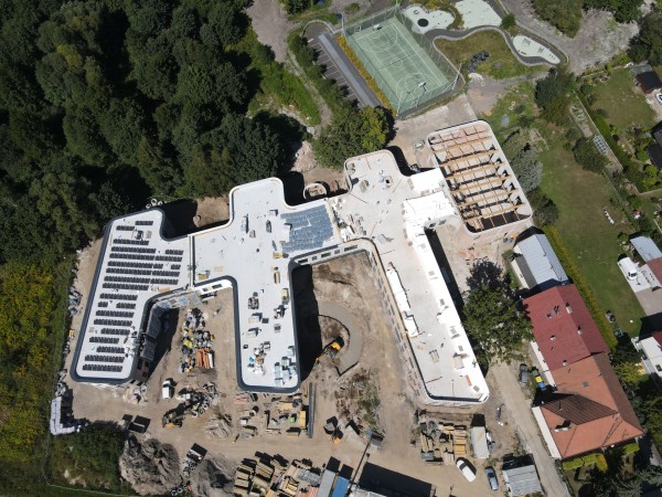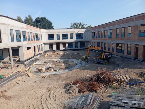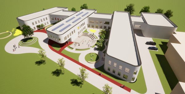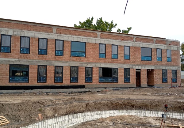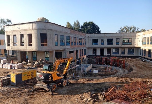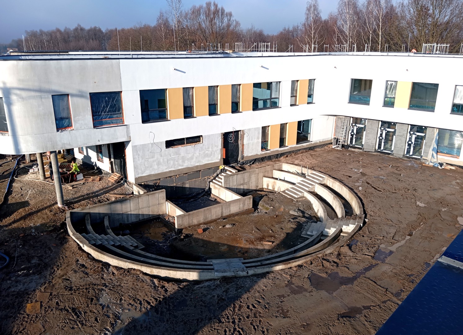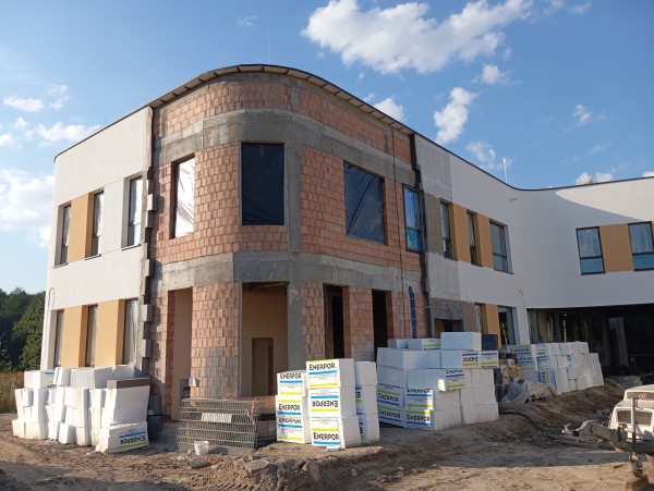 Budowa Zespołu Placówek Oświatowych w Wielkich Drogach. W skład kompleksu edukacyjnego wchodzą budynki: szkoły podstawowej, przedszkola ze żłobkiem oraz hali sportowej.