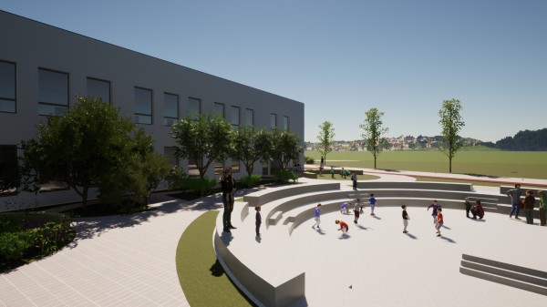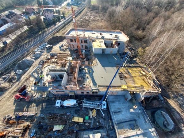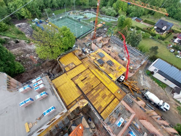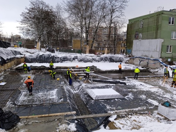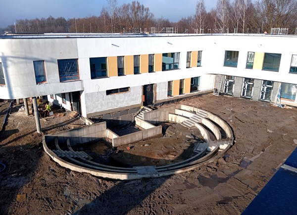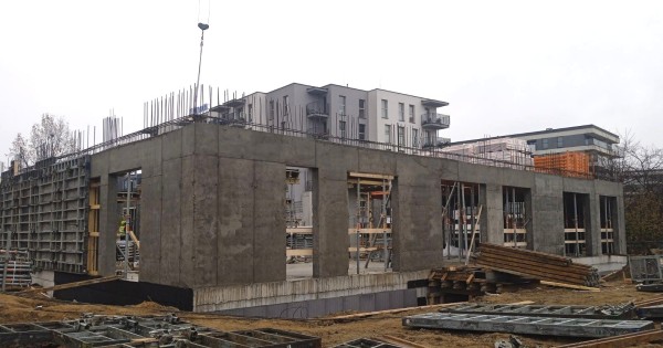 Budowa budynku usług komercyjnych przedszkola oraz szkoły (etap I) przy ul. Na Łąkach w Krakowie.